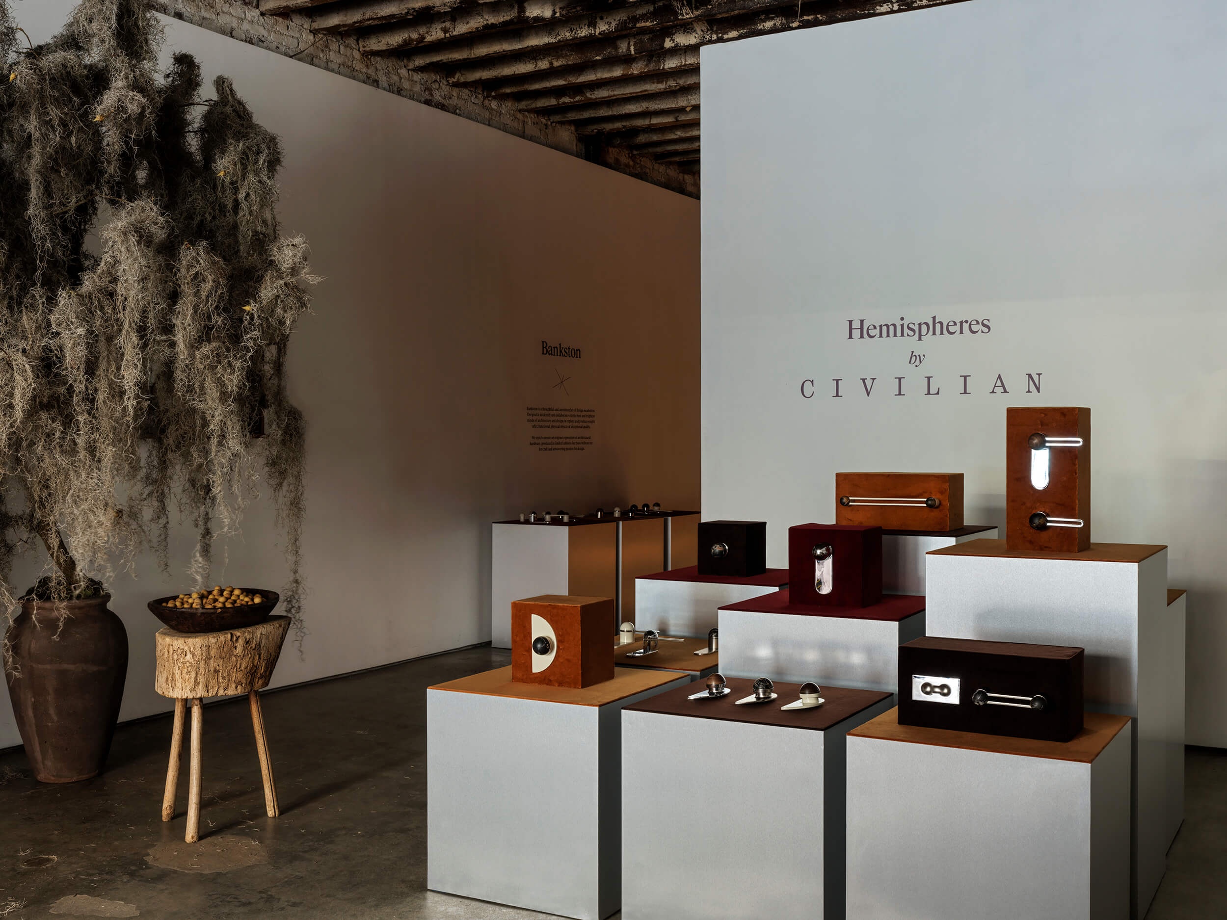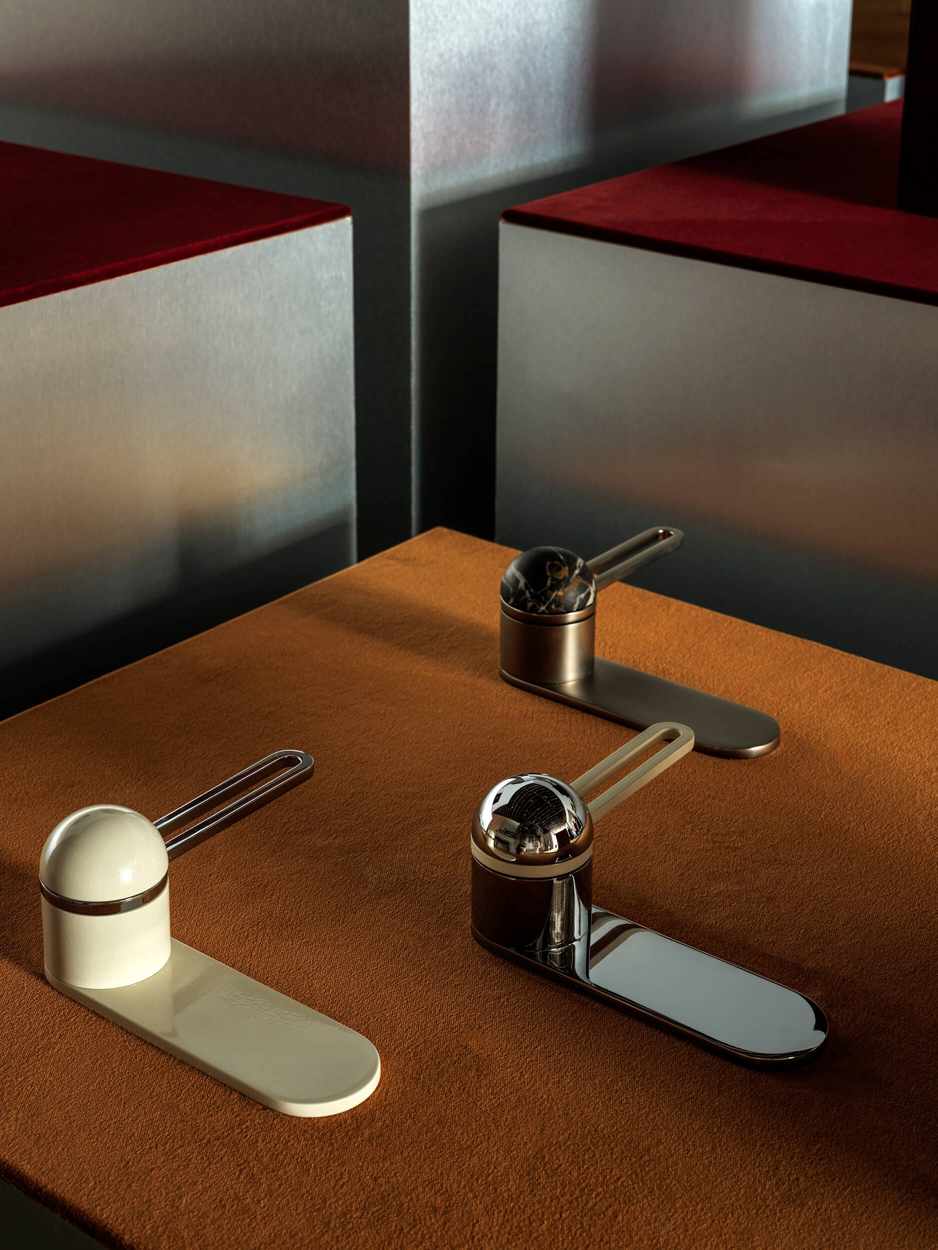 CIVILIAN was approached by Bankston Architectural, an Australian door hardware manufacturer, to design a 10-piece range. Inspired by the typographic sculptures of Takenobu Igarashi and the interwar period of design, when pre-industrial craft traditions overlapped with industrial mass-production techniques, the collection uses the half dome shape in multiple materials to elaborate multiple door hardware forms. This modular approach - using polished chrome, satin nickel, bone finishes with American Walnut and Petoro Gold marble - will allow consumers to customize the range. The two-year collaboration culminated in Bankston’s entry into the US market during NYCxDesign 2024 with an off-site event presentation designed by CIVILIAN.