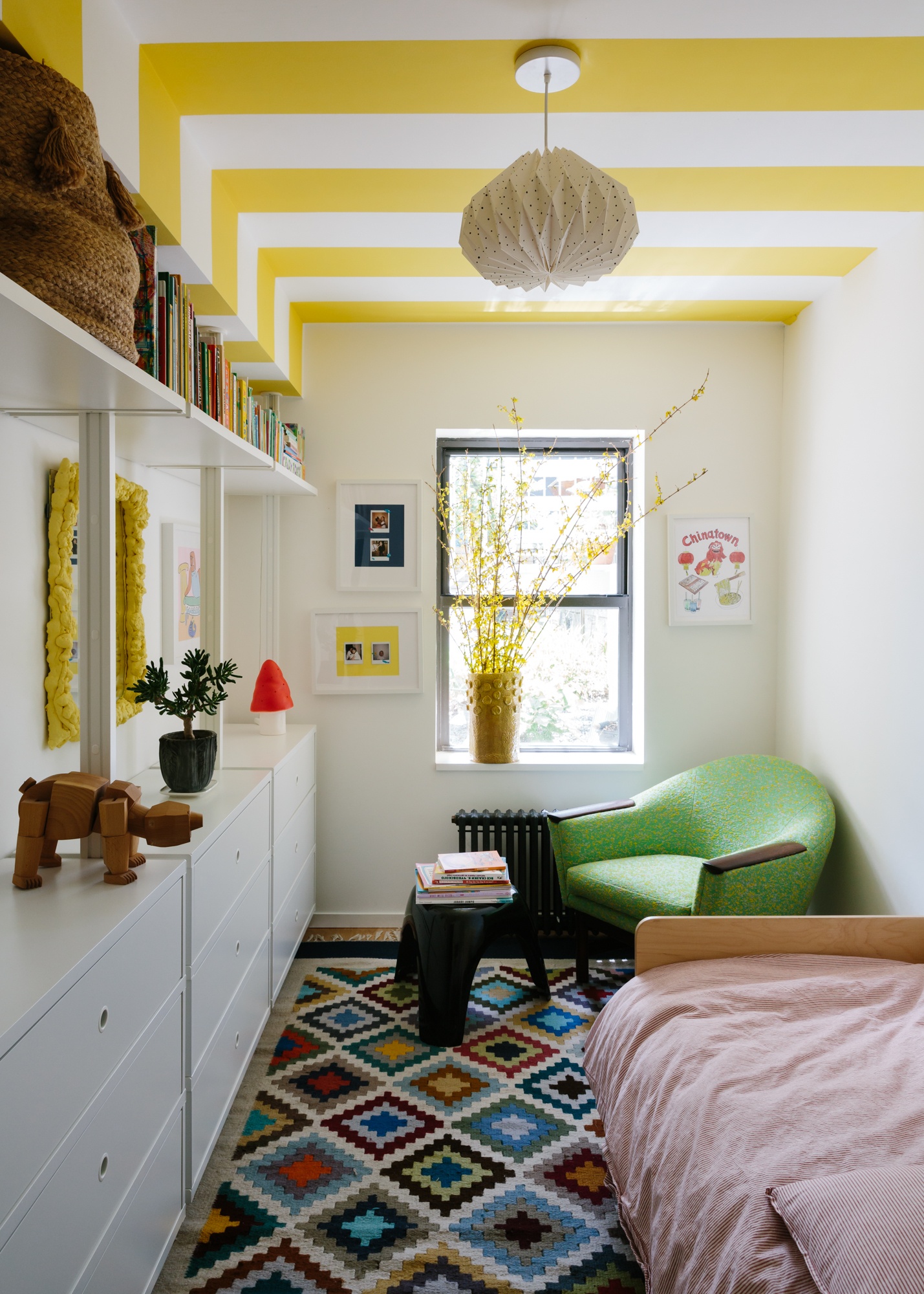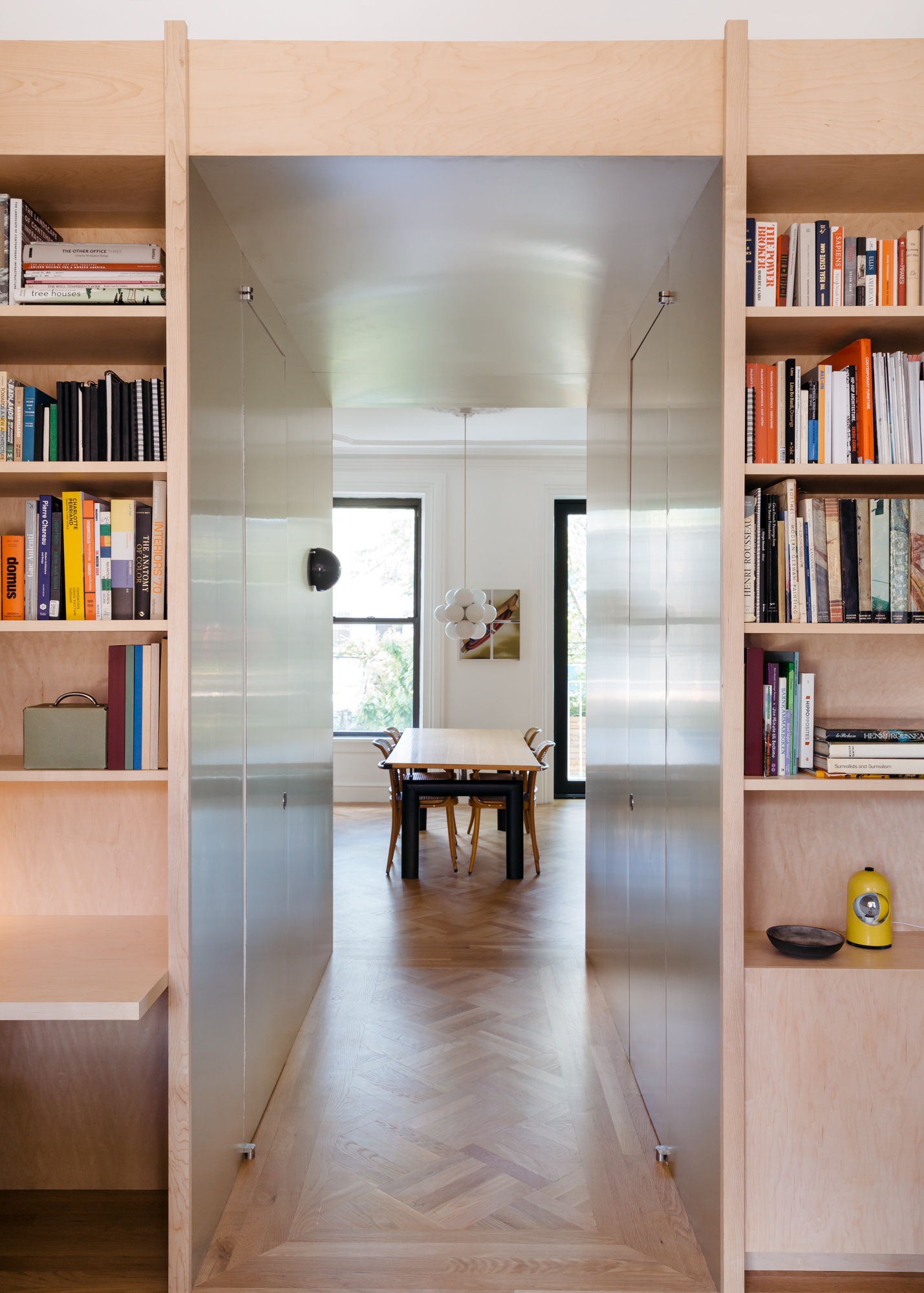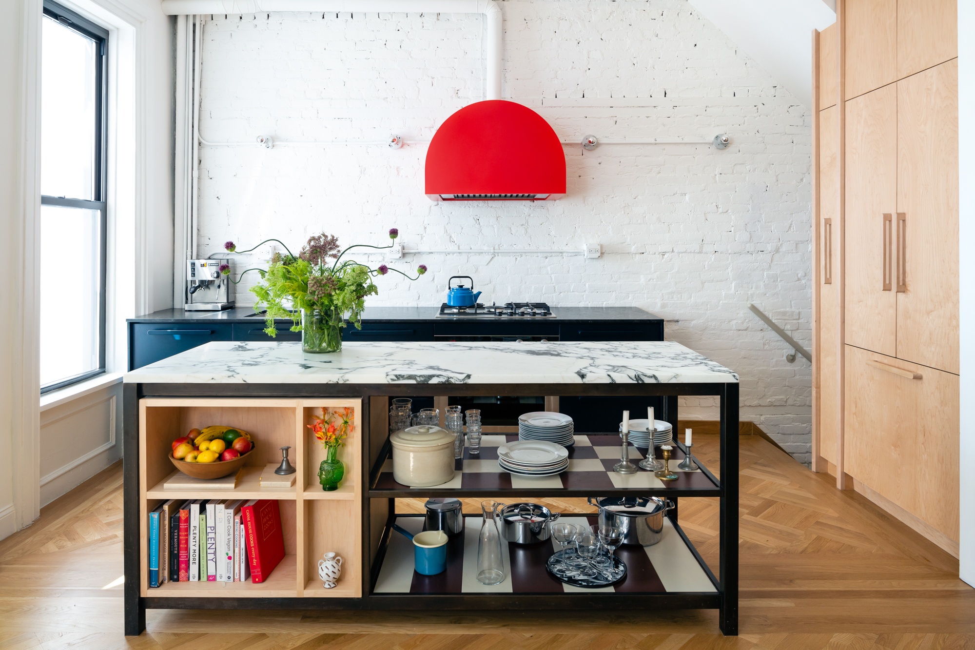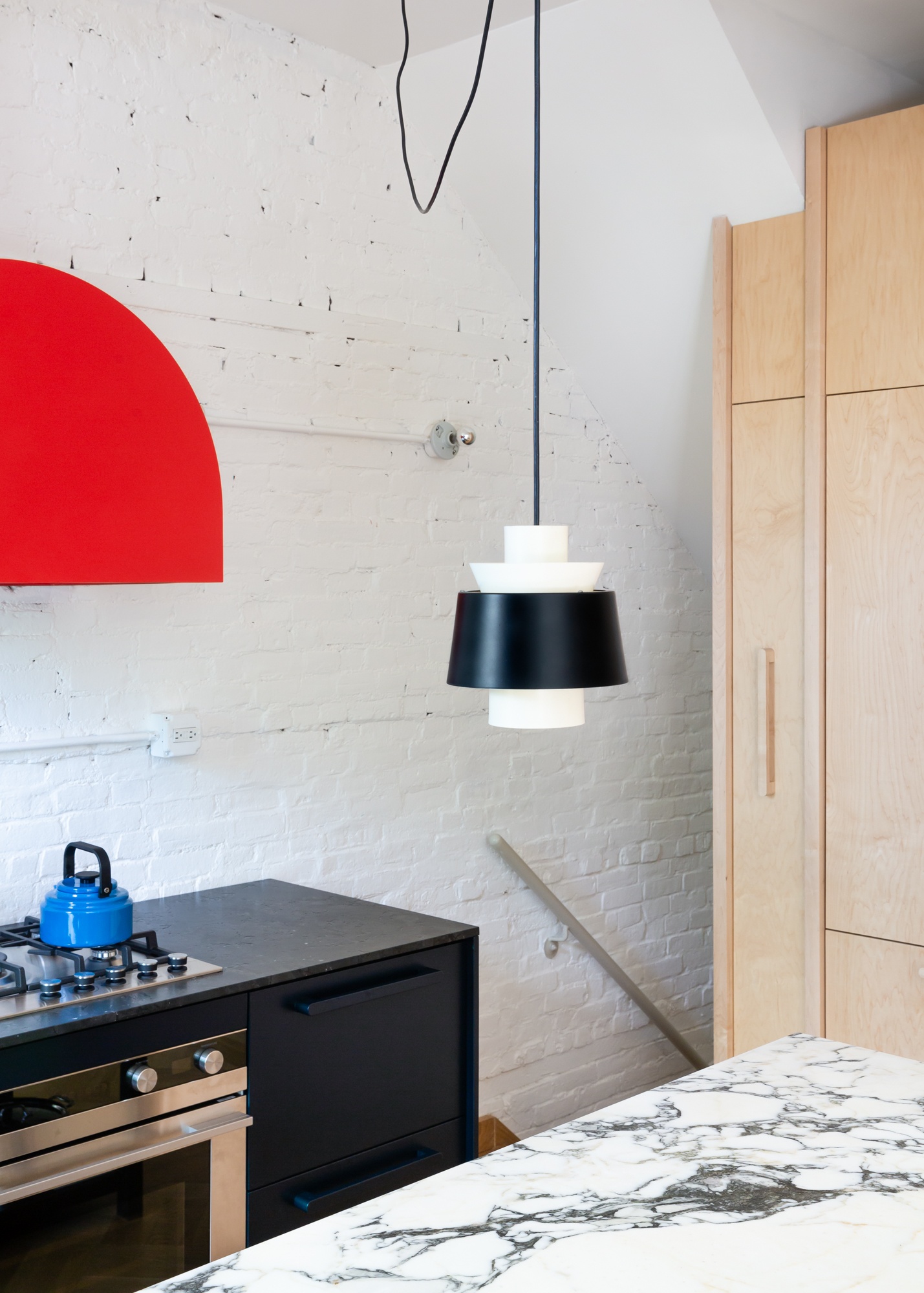 The project incorporates a playful mix of vintage and contemporary design drawing from a diverse mix of references, while carefully integrating custom built-in storage and state-of-the-art building systems. The resulting space foregrounds contemporary artists and makers while maintaining a sense of comfort and ease that supports the daily rituals of a young family.