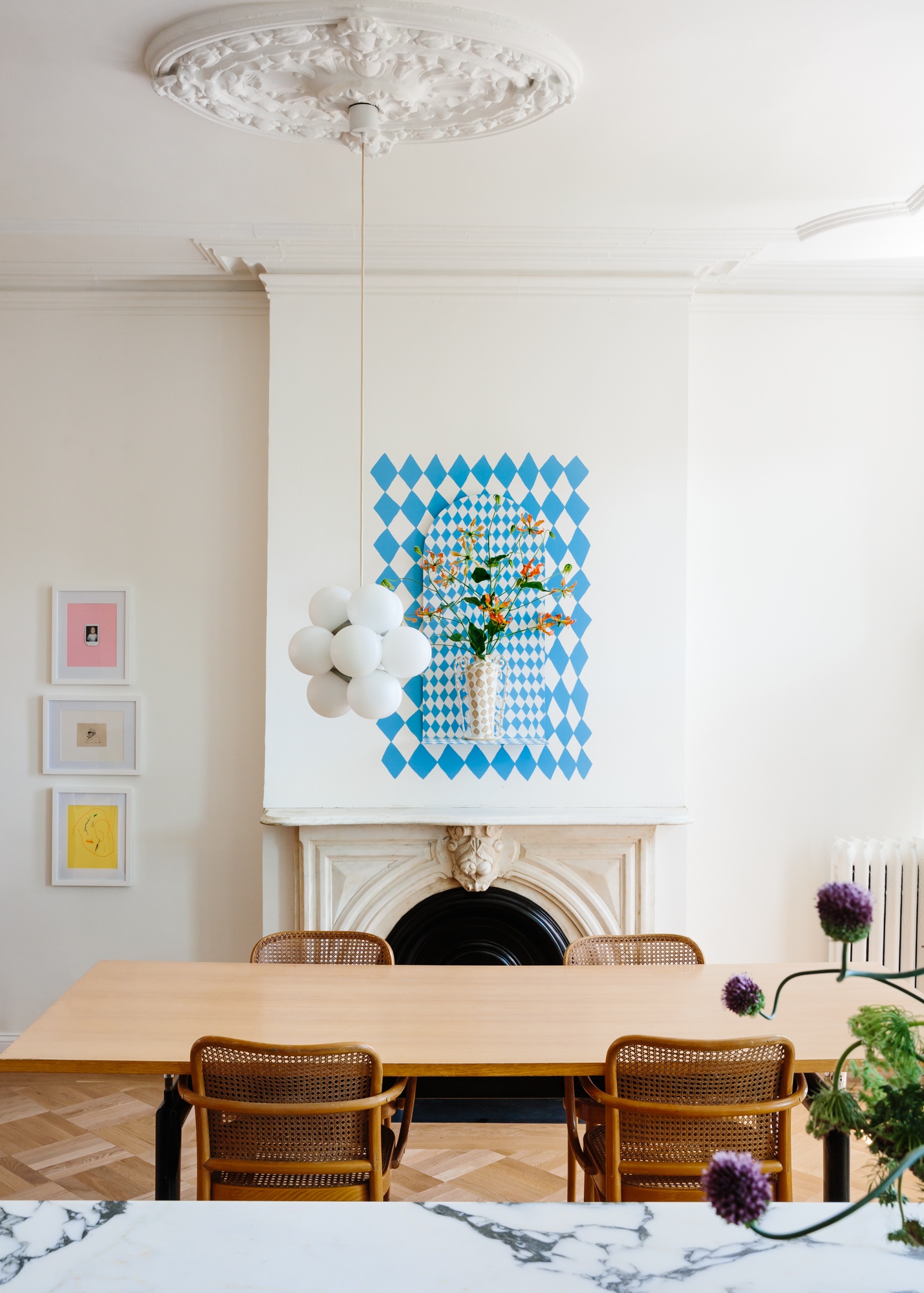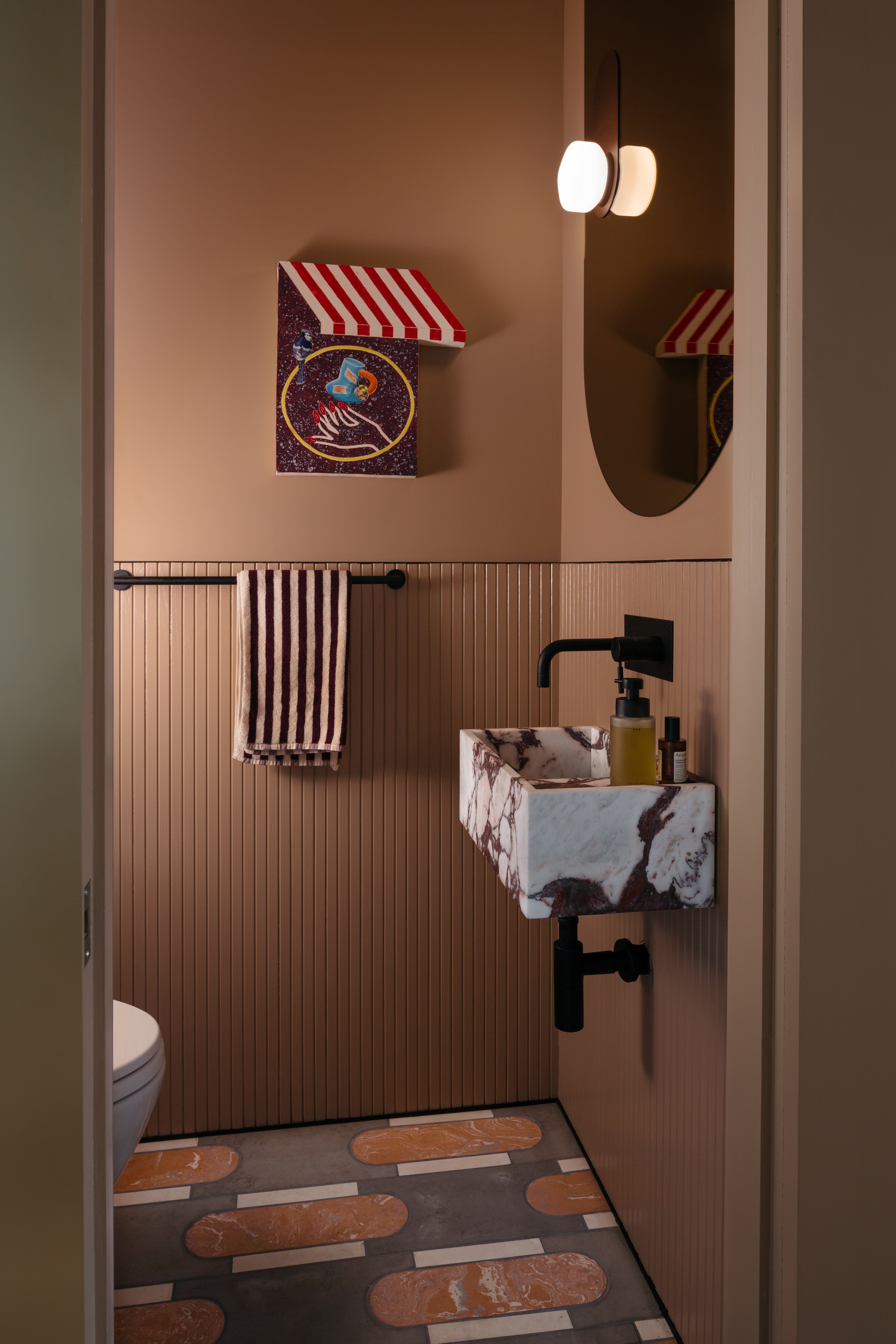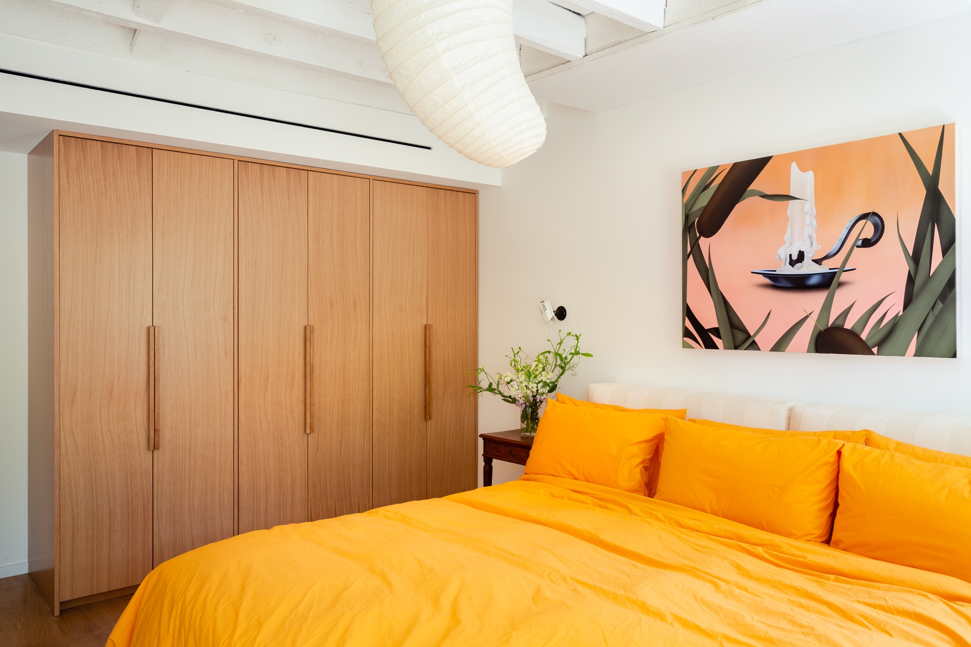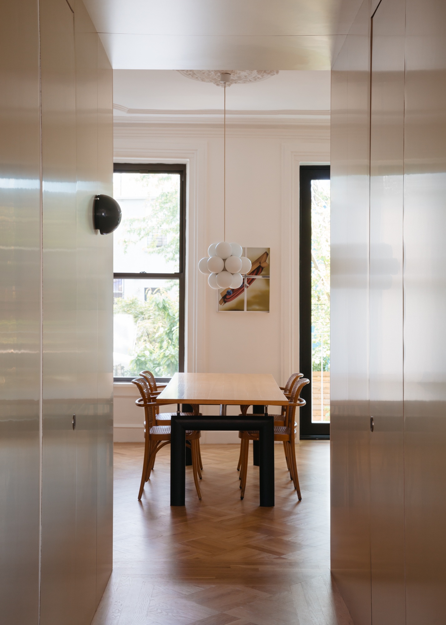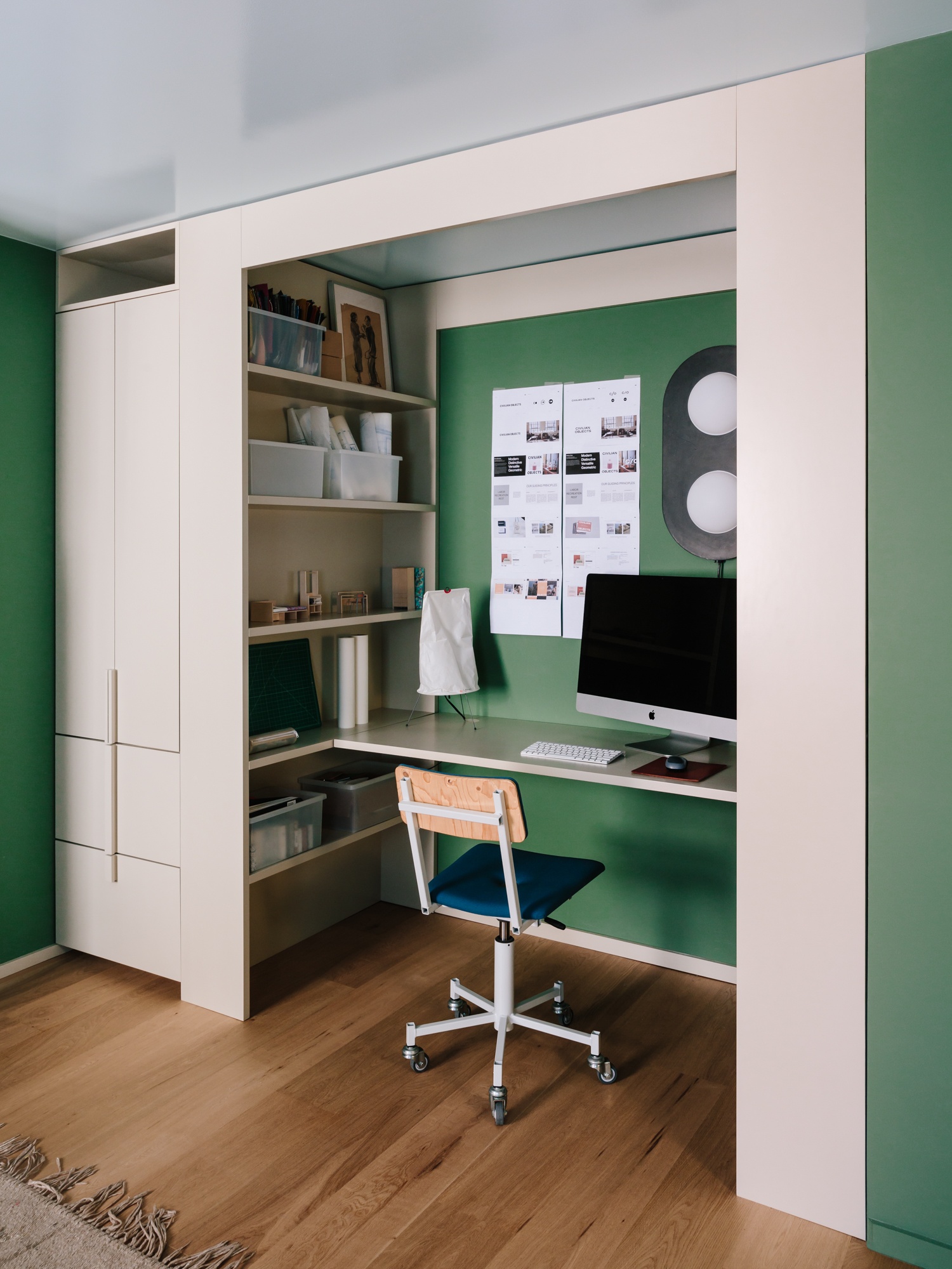 The project incorporates a playful mix of vintage and contemporary design drawing from a diverse mix of references, while carefully integrating custom built-in storage and state-of-the-art building systems. The resulting space foregrounds contemporary artists and makers while maintaining a sense of comfort and ease that supports the daily rituals of a young family.