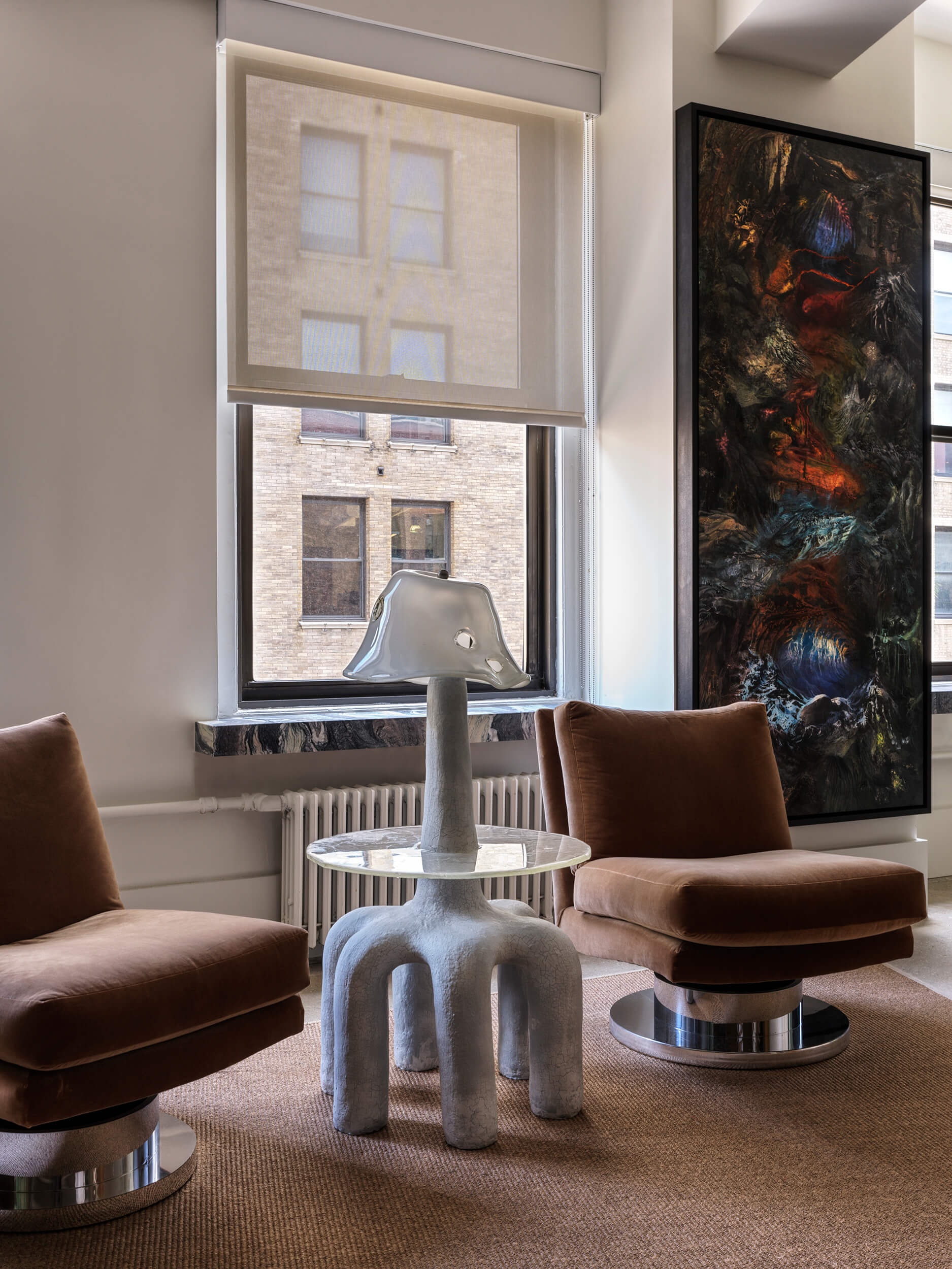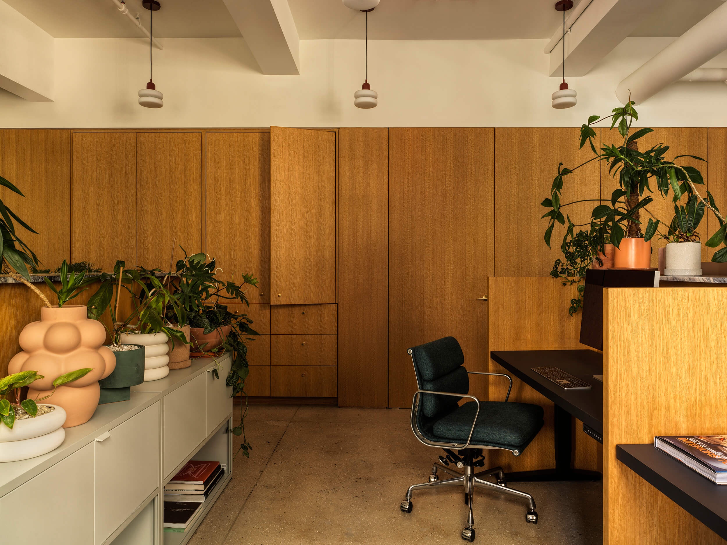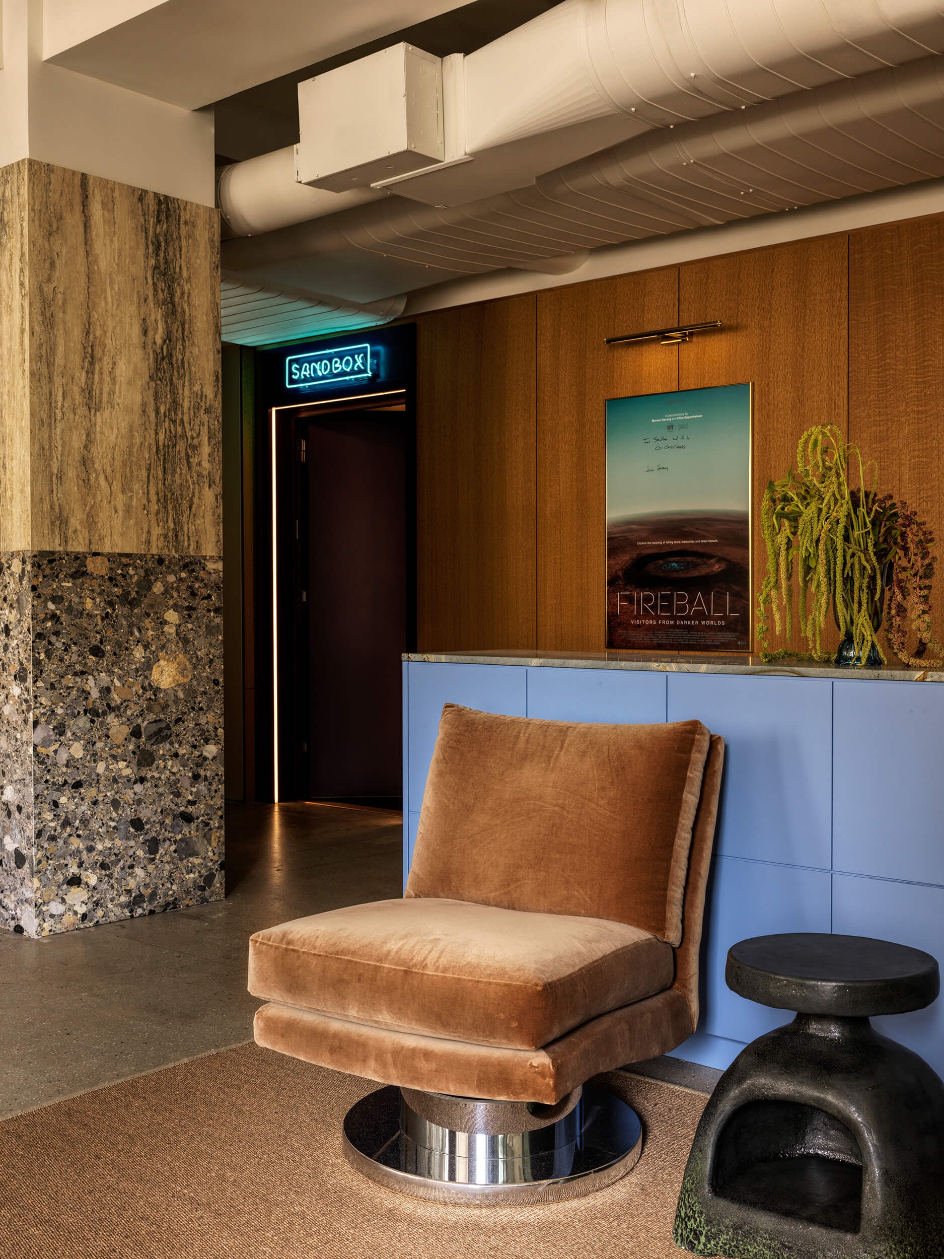 Sandbox Films’ headquarters is designed to support the full life-cycle of documentary film-making—offering a workspace for production by day and a gathering space for screenings and community-building by night. Set within a 1920s Neo-Gothic skyscraper, the design draws inspiration from early movie houses and Art Deco-era New York, blending rich materiality with state-of-the-art technology. At its heart is a 22-seat Dolby Atmos-certified screening room, a space for both critical review and industry gatherings. Surrounding it, a mix of private editing suites, open and private workspaces, and a central reception lounge with a bar creates an office that operates more like a members’ club, fostering dialogue between artists, collaborators, and industry leaders.