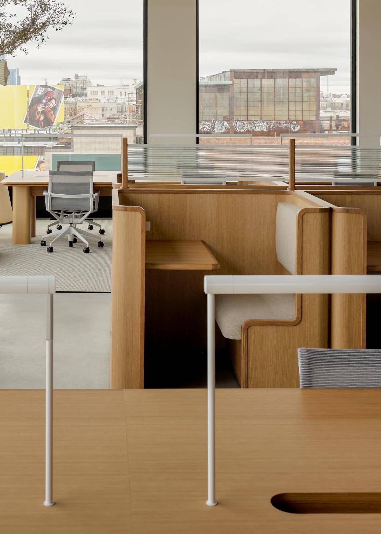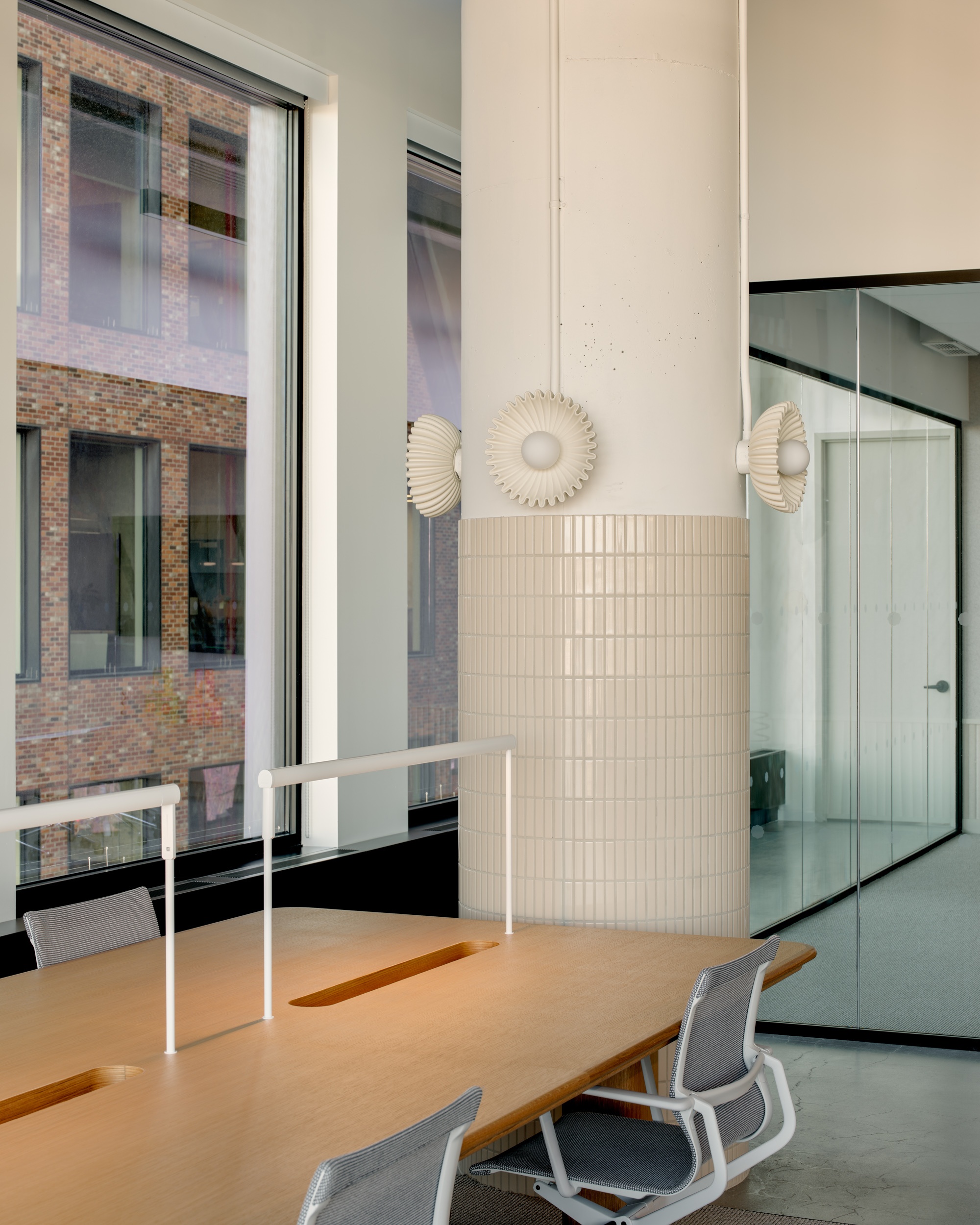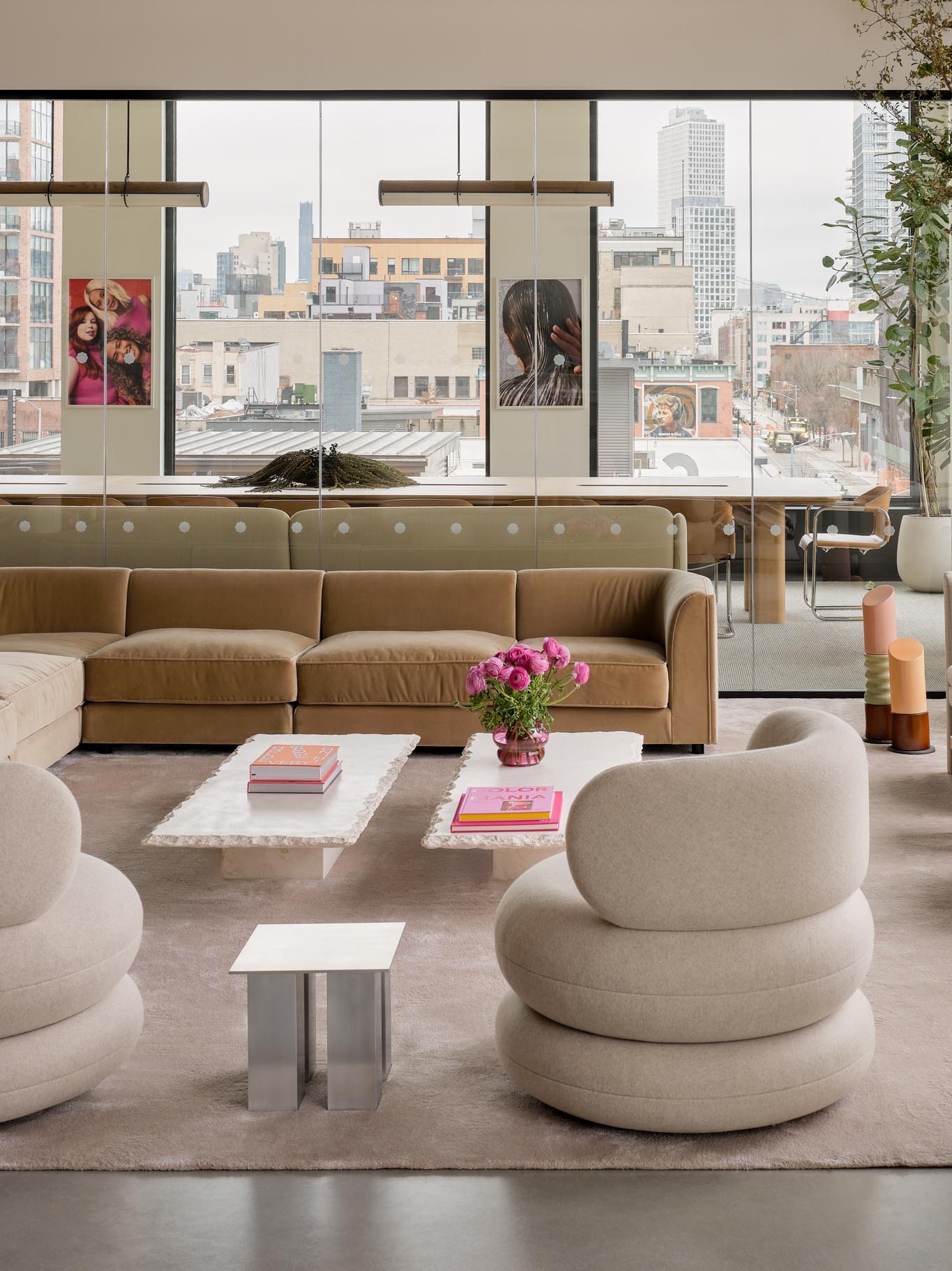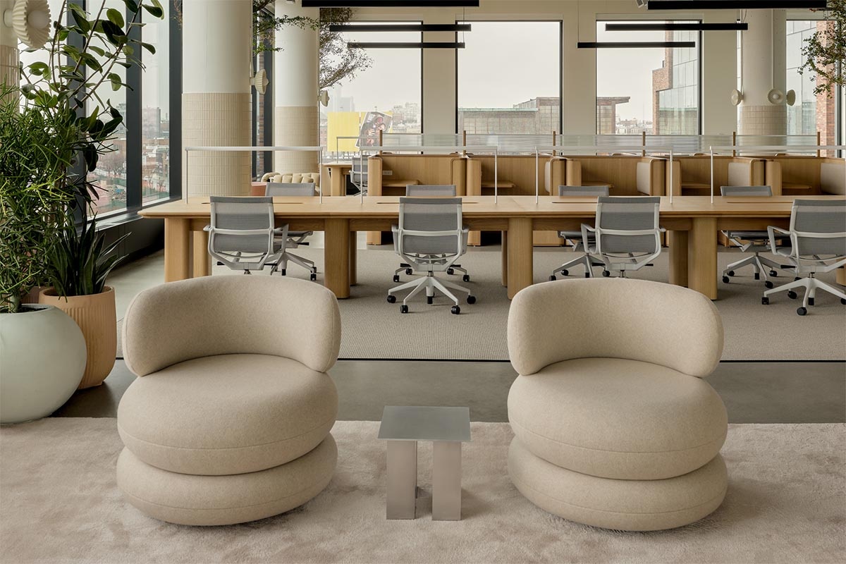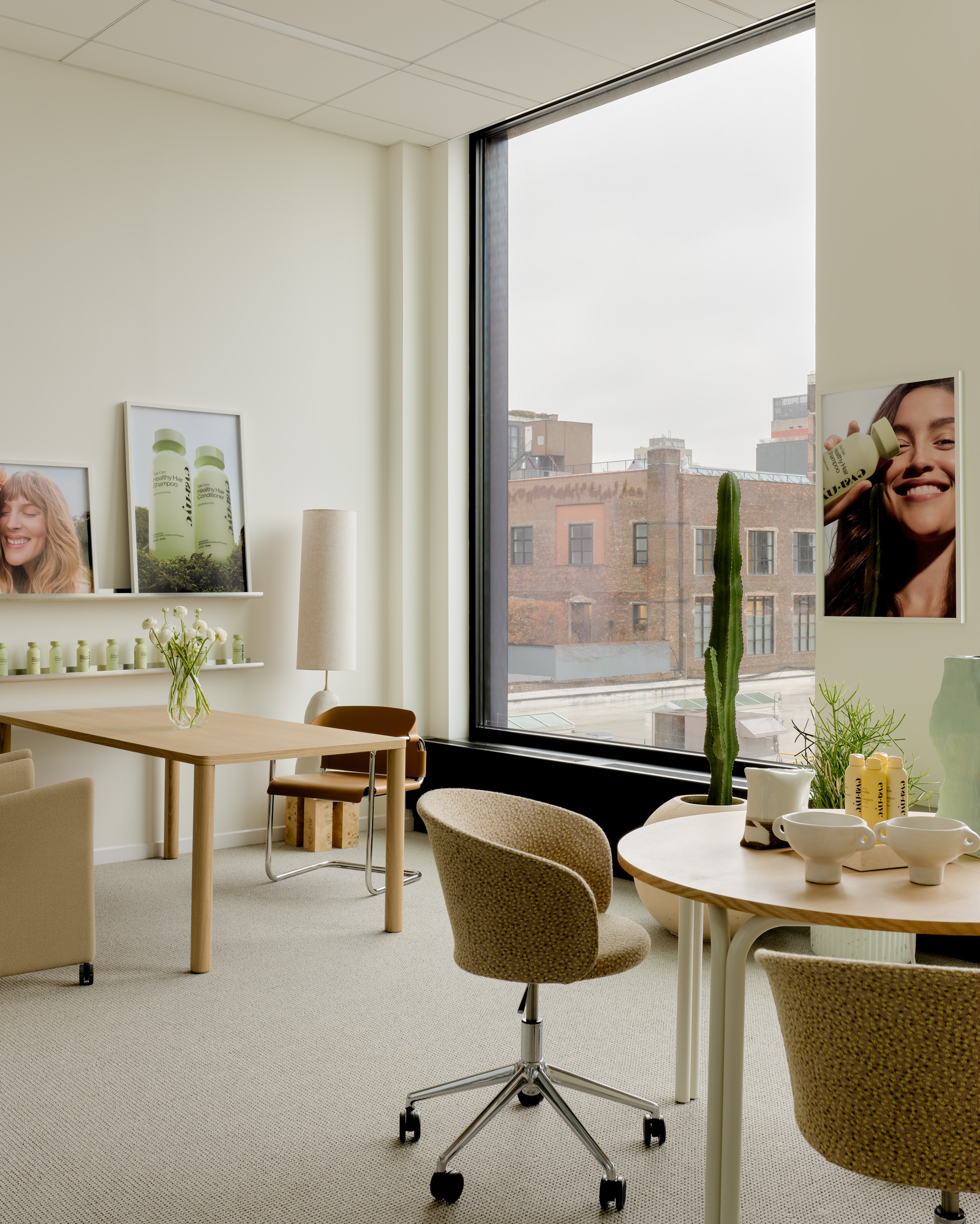 Amika’s Brooklyn headquarters channels the brand’s bold, high-energy identity into a refined, highly functional workspace. The 20,000-square-foot office balances vibrant creativity with an elevated material palette—soft neutrals, warm woods, and biophilic elements that create a sophisticated backdrop for Amika’s signature colorful products. Designed for hybrid work, the space blends open work areas with private focus rooms, communal lounges, and a café-style pantry. Custom furniture and flexible layouts ensure adaptability, making the office as dynamic and expressive as the brand itself—without ever feeling overwhelming. The new office design has increased employee engagement and in-office attendance, and has provoked Amika to host industry events, cementing their role as thought-leaders in the beauty space.